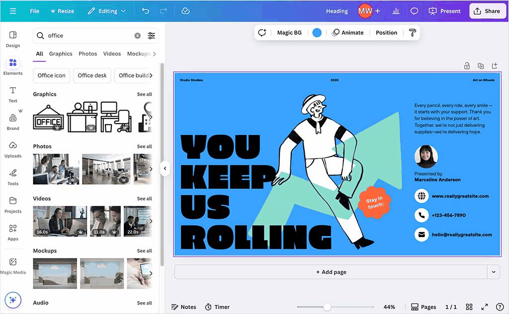 Brand Kit feature for consistent colors and fonts