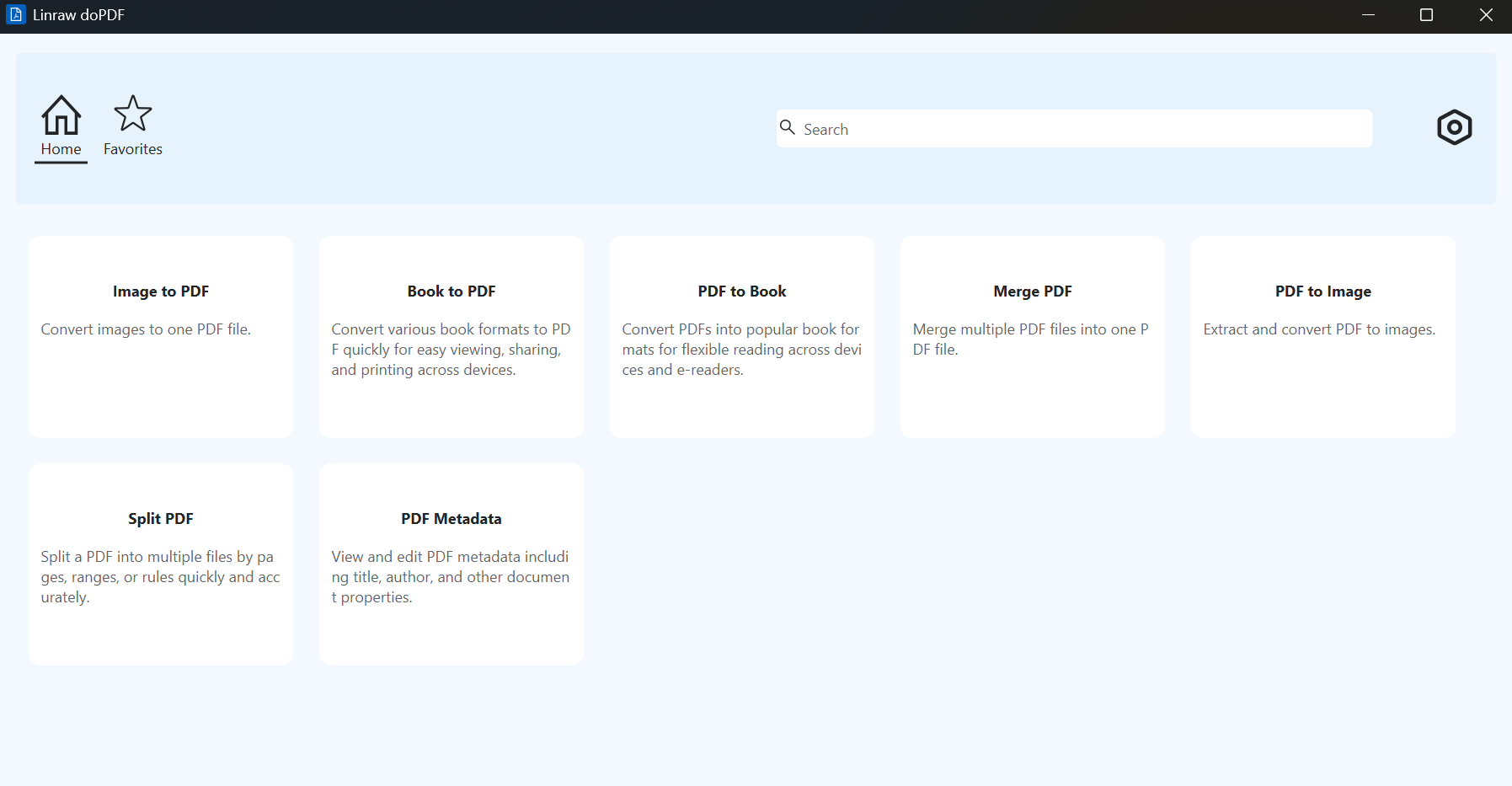 Whether you need to merge PDFs, split pages, convert between images and PDF, create digital books, or edit metadata — Linraw doPDF has a simple, dedicated tool for every task.